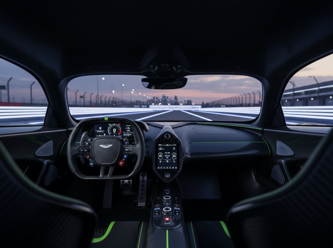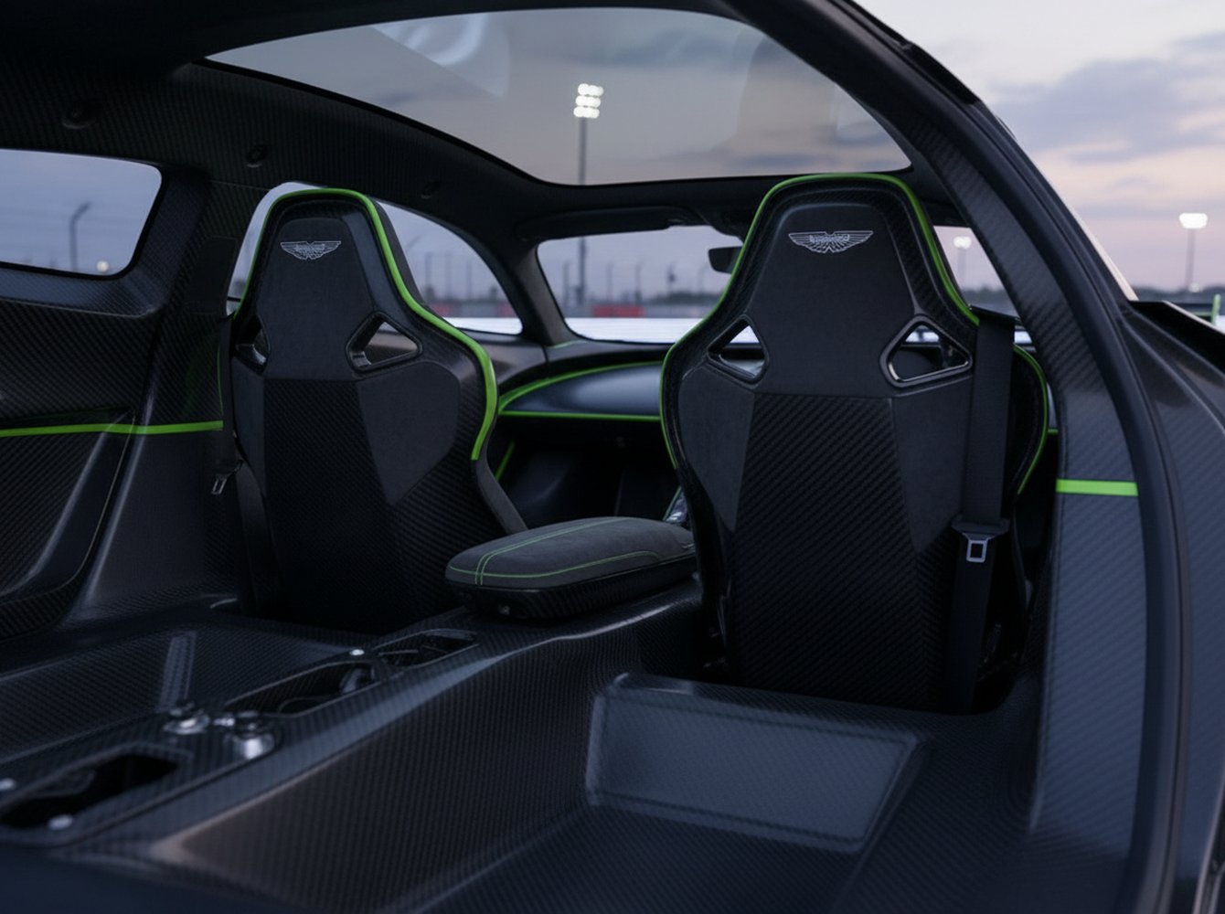 The cabin of the AMR Pro eschews all non-essential comforts. There is no infotainment system or sound-deadening material. The experience is entirely driver-centric, designed to connect the pilot directly to the machine and the track. The fixed-back seats and racing harness lock the occupants in place, ensuring they are one with the chassis through high-G cornering maneuvers.