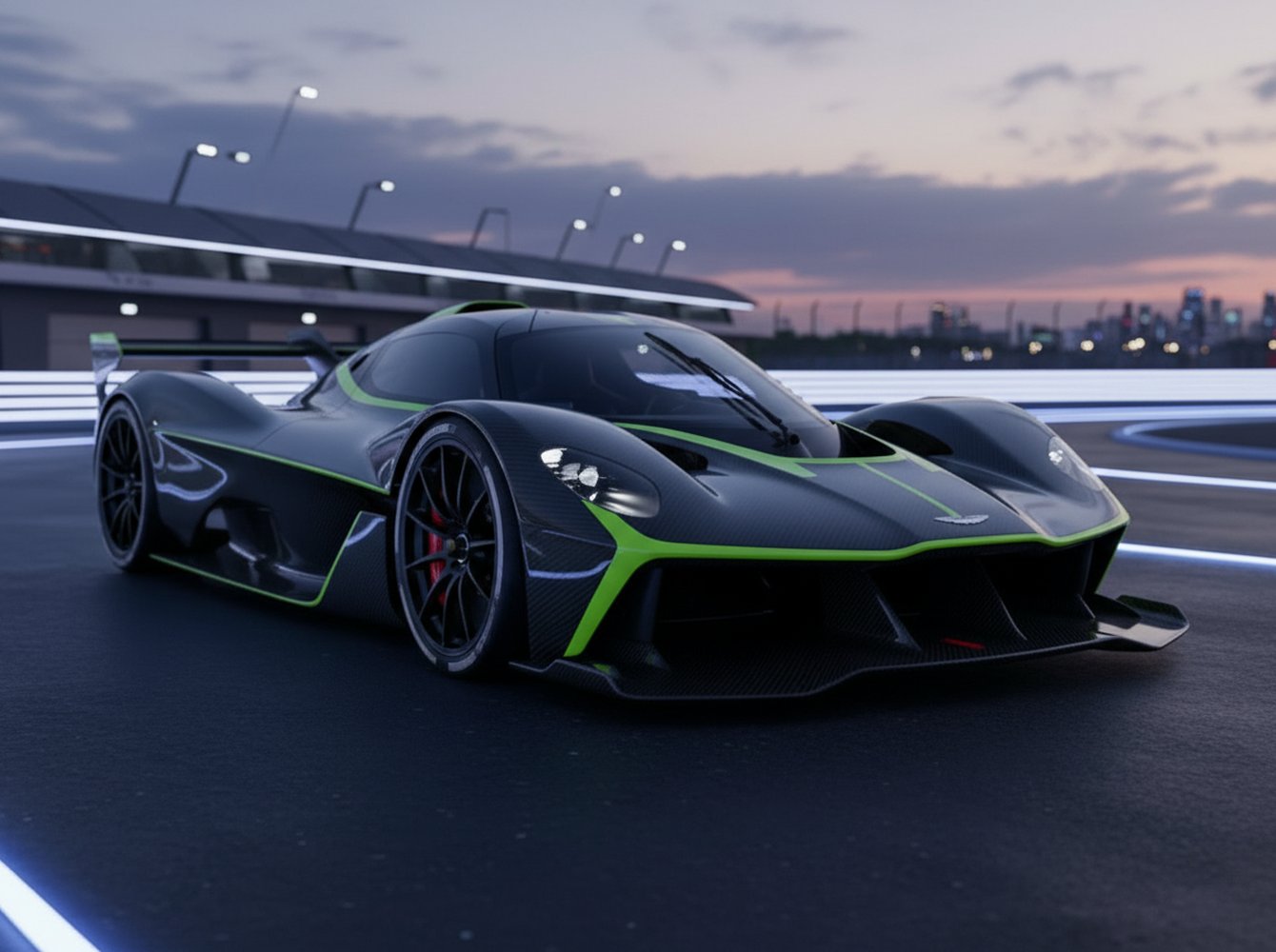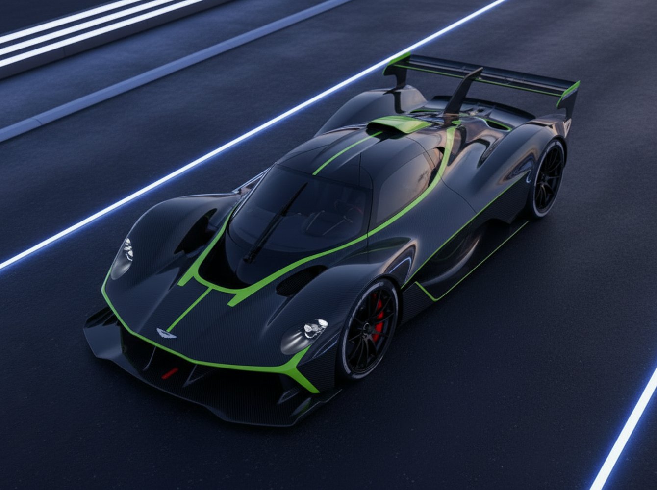 Crafted almost entirely from carbon fiber, the bodywork is sculpted to manipulate airflow with brutal efficiency. Even the windows are made from lightweight Perspex. Inside, the cockpit is spartan and purposeful, featuring molded carbon-fiber race seats integrated into the tub and a Formula 1-style steering wheel that houses all critical controls and a telemetry screen, reinforcing that this is a pure-bred racing instrument.
