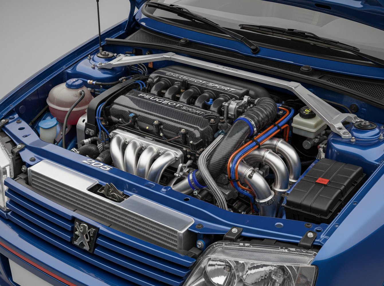 The new 205 T16 is instantly recognizable, yet fiercely modern. Its iconic widebody silhouette is now sculpted from carbon fiber and composite alloys, retaining the pugnacious stance of the original. The signature side intakes are larger and more functional, feeding a mid-mounted powertrain, while the rear clamshell opens to reveal the intricate engineering within. Advanced LED lighting elements are integrated into the classic fascia, creating a visual signature that honors the past without being trapped by it.