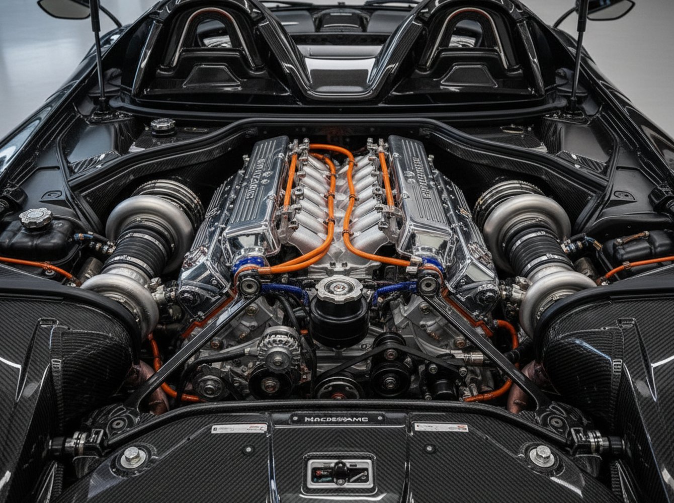 The Roadster is powered by a 6.0-liter, twin-turbocharged V12 engine custom-built for Pagani by Mercedes-AMG. It delivers 864 horsepower and 811 lb-ft of torque, specifically tuned for this application.
