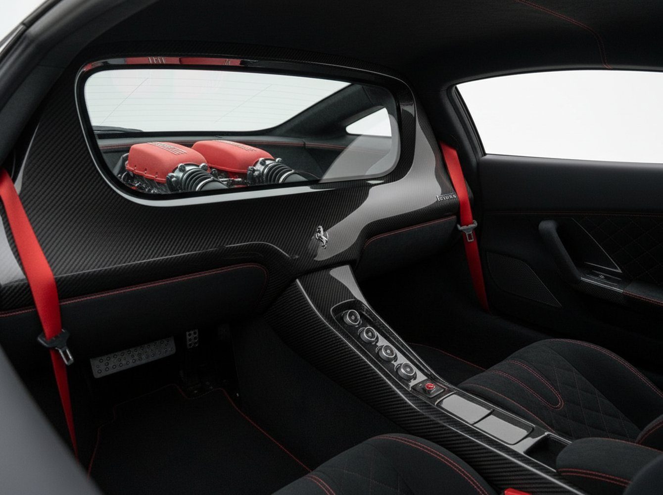 The F50 Tributo’s silhouette is an immediate and powerful nod to its iconic predecessor. Penned by Flavio Manzoni’s team, the design retains the F50’s dramatic, integrated rear wing and low-slung profile. Yet, every surface has been optimized for modern aerodynamic efficiency, featuring active underbody venturi channels and a dynamic rear spoiler that work in concert. The body is sculpted entirely from aerospace-grade carbon fiber, while the open-gate shifter, a nostalgic touch, is reimagined within a minimalist, driver-focused cockpit swathed in Alcantara and exposed carbon weave.