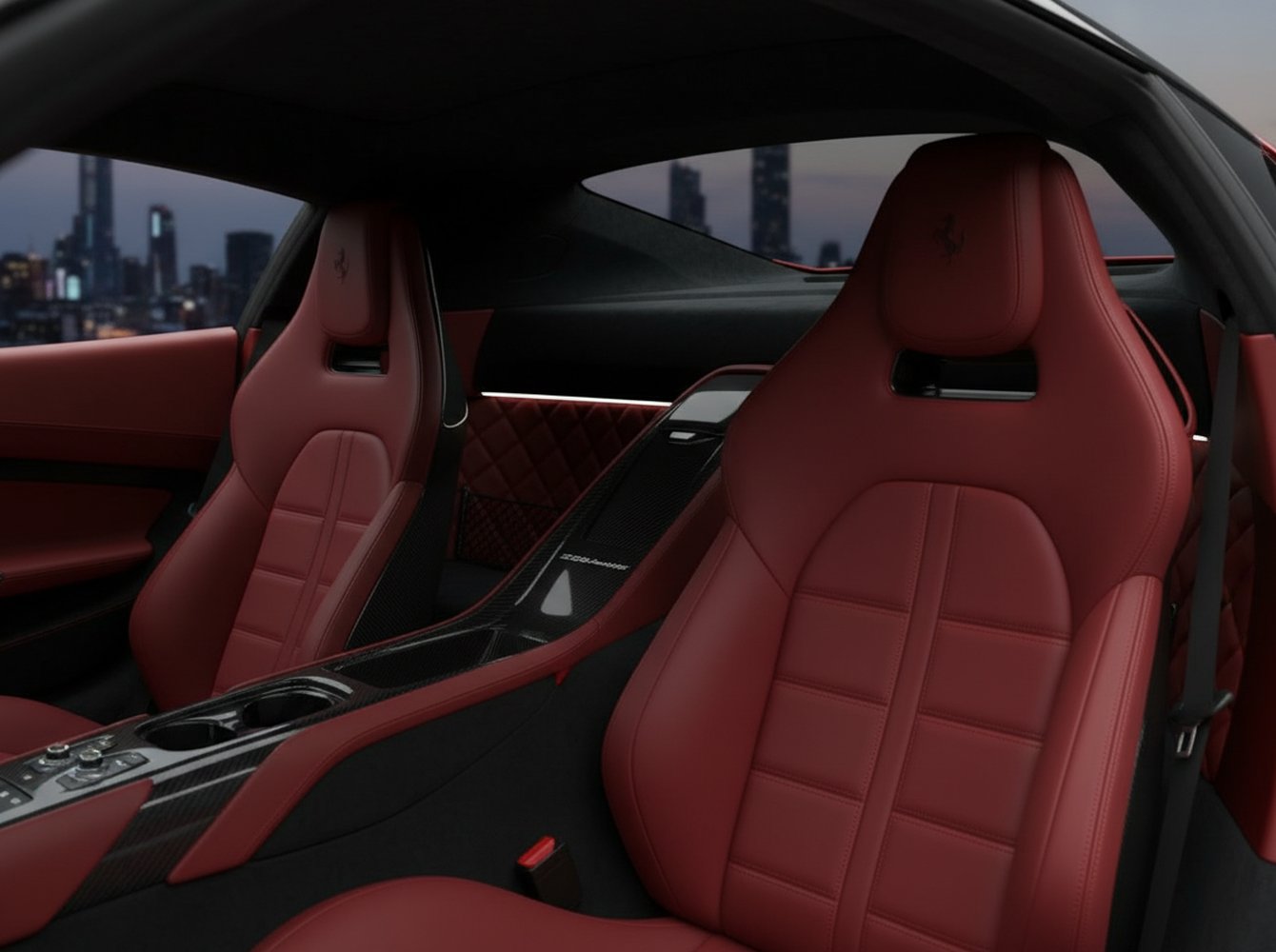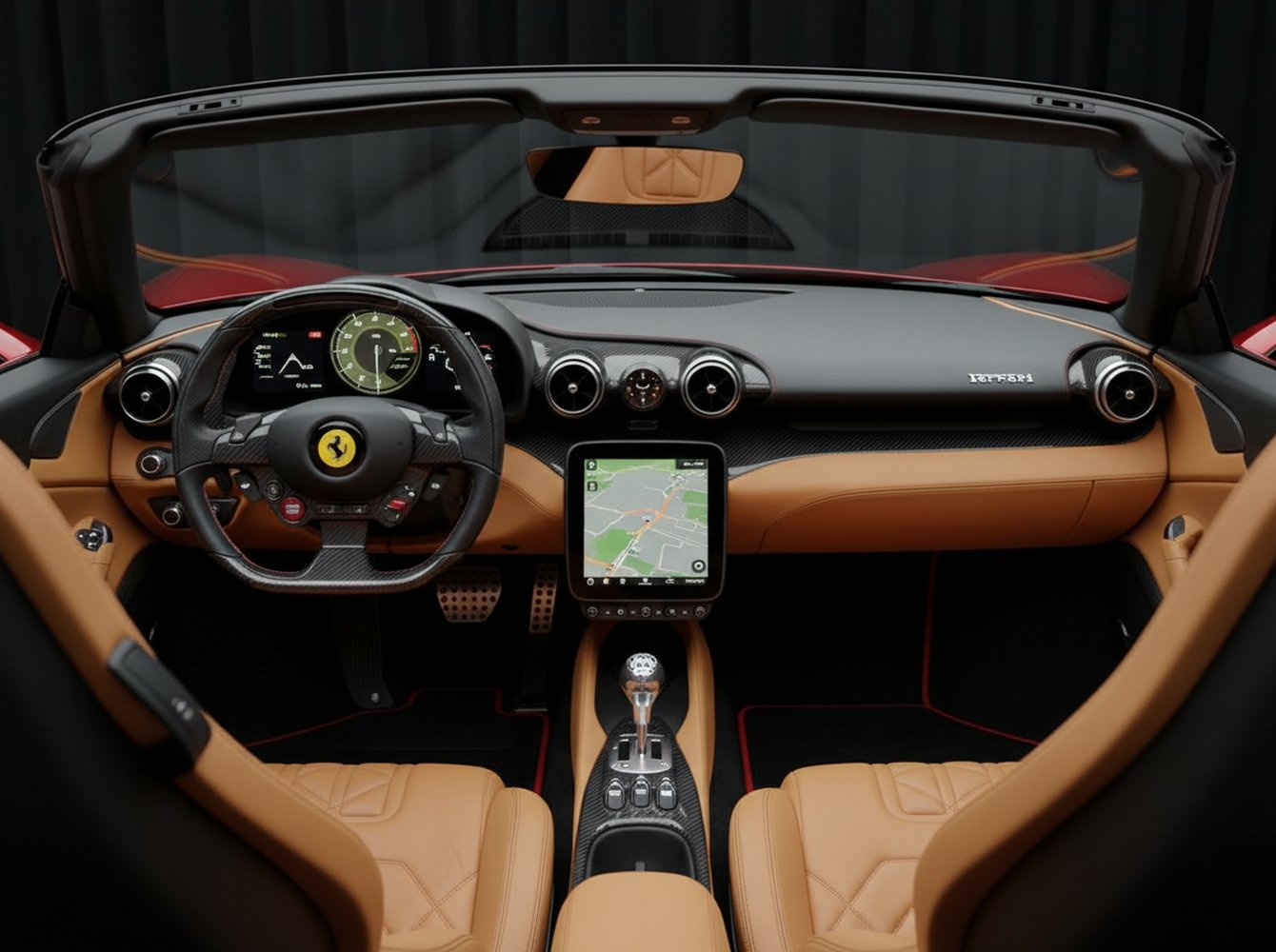 Despite its track-focused credentials, Ferrari engineered the 250 Evoluzione for grand touring, just like its namesake. The seats are bespoke carbon-shelled units, but they are ergonomically designed for long-distance comfort. The infotainment is discreetly integrated, offering essential connectivity without dominating the dashboard. Every control is positioned for intuitive access, allowing the driver to remain focused on the visceral driving experience.