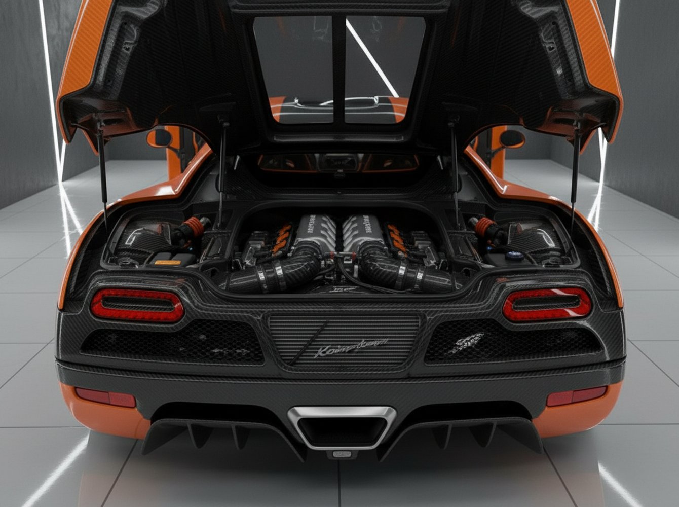 At the heart of this machine lies a re-engineered 5.0-liter twin-supercharged V8, specifically tuned to unleash its full fury on E85 biofuel. This monstrous engine produces over 1,200 horsepower and 1,100 lb-ft of torque, delivered to the rear wheels through an updated version of Koenigsegg’s lightning-fast Light Speed Transmission (LST). The chassis, a carbon fiber monocoque with unparalleled torsional rigidity, is paired with the brand’s signature Triplex suspension system and massive carbon-ceramic brakes, ensuring that its colossal power is met with absolute control and precision.