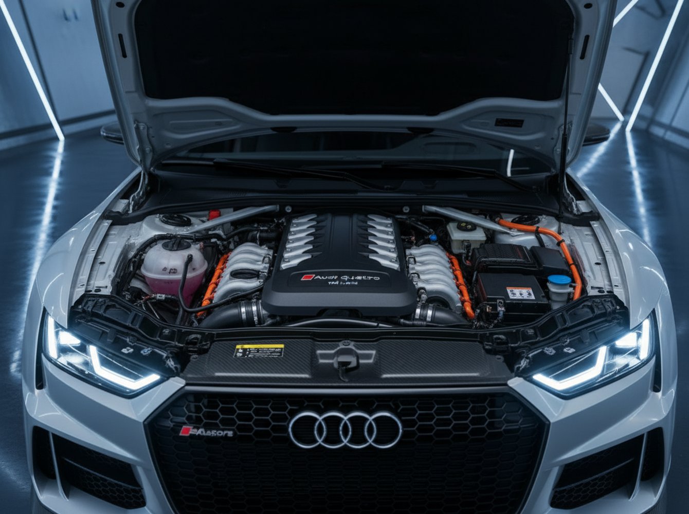 It combines a 2.5L five-cylinder gasoline engine with an electric turbocharger and a separate electric motor on the rear axle. The system provides instant torque, eliminates turbo lag, and enables a highly advanced, variable all-wheel-drive capability for superior grip and handling.