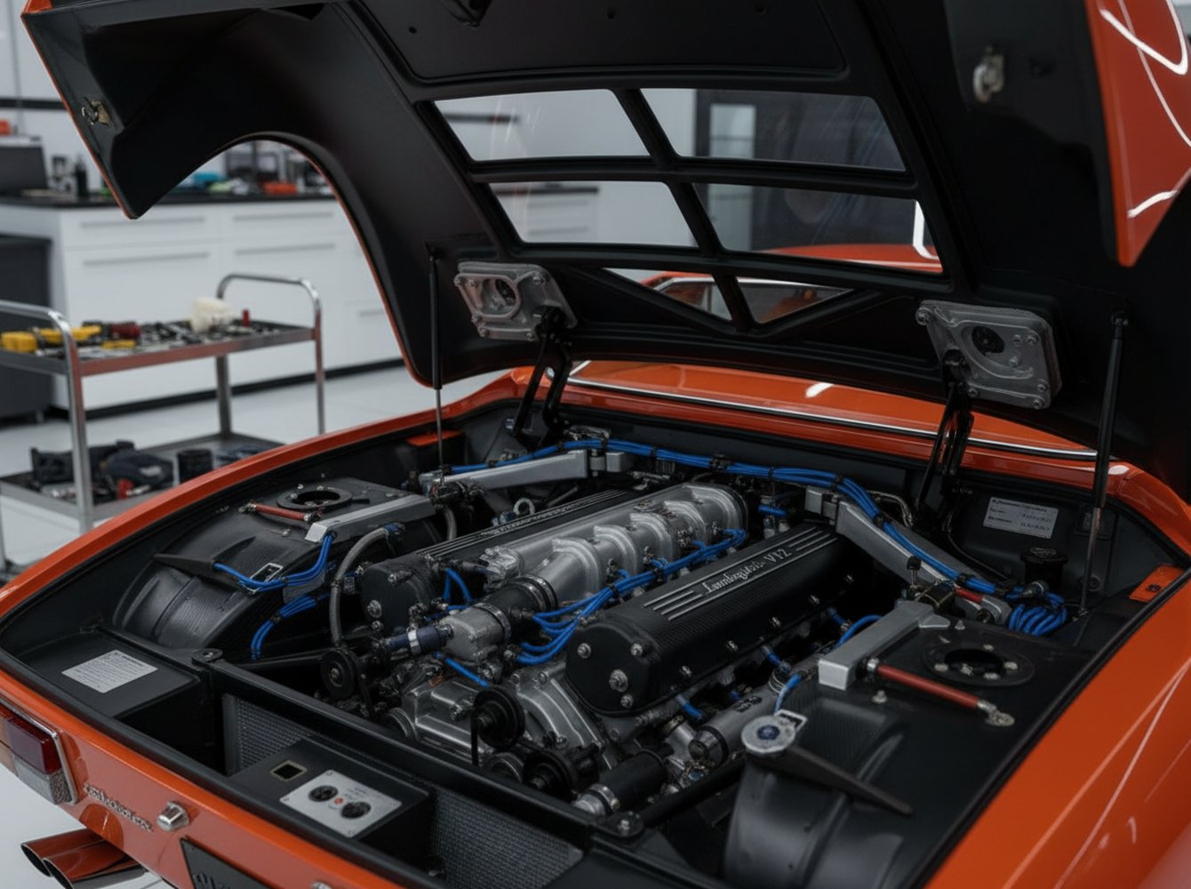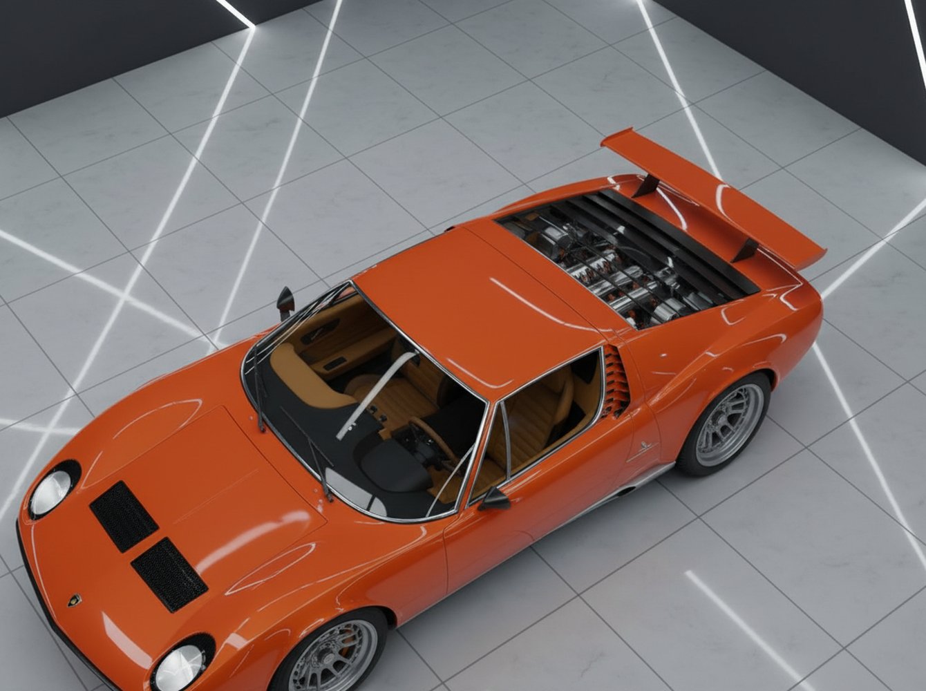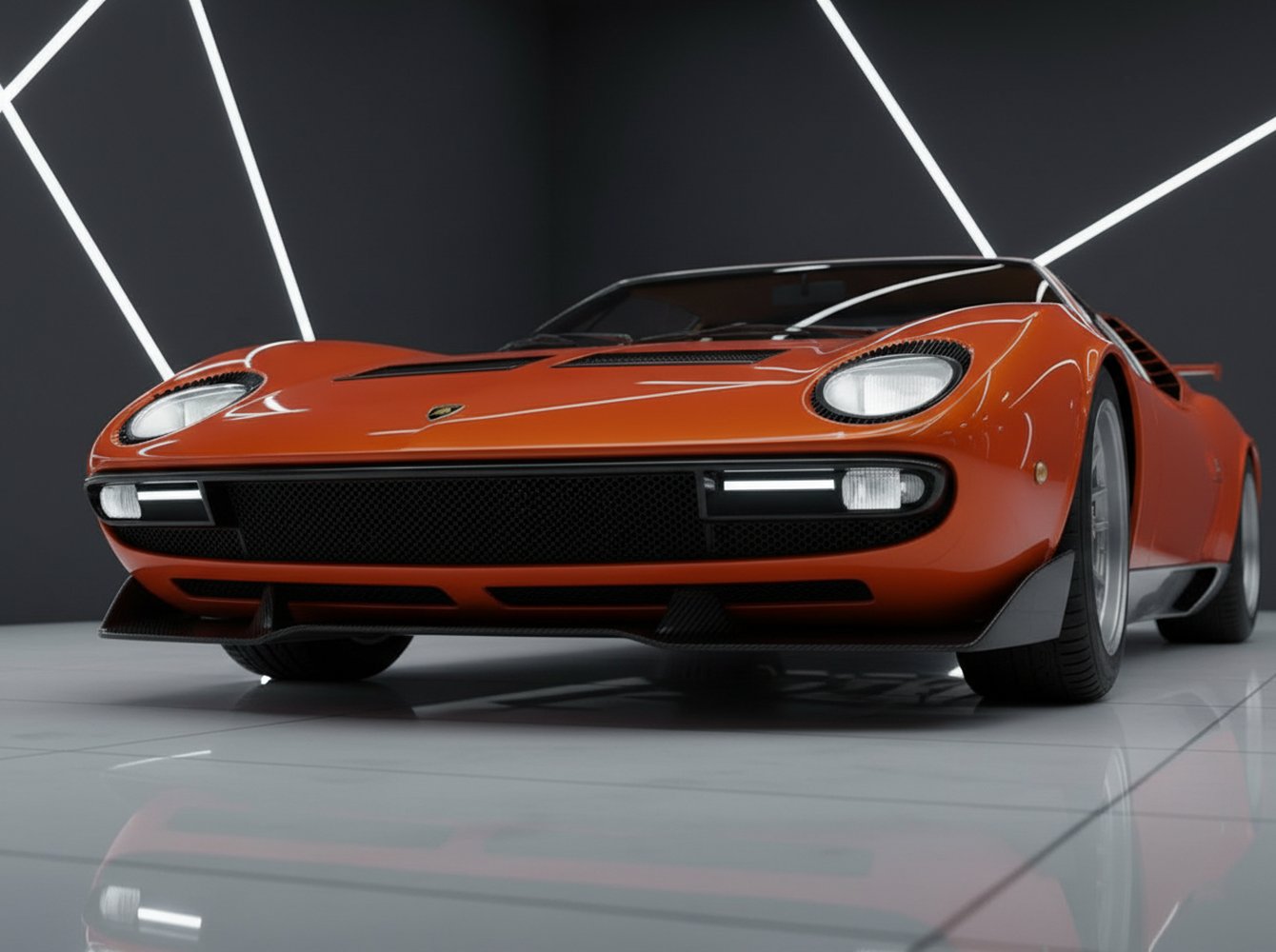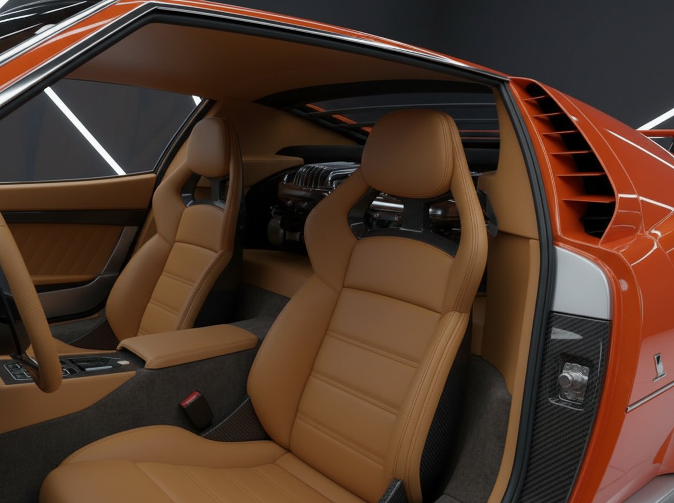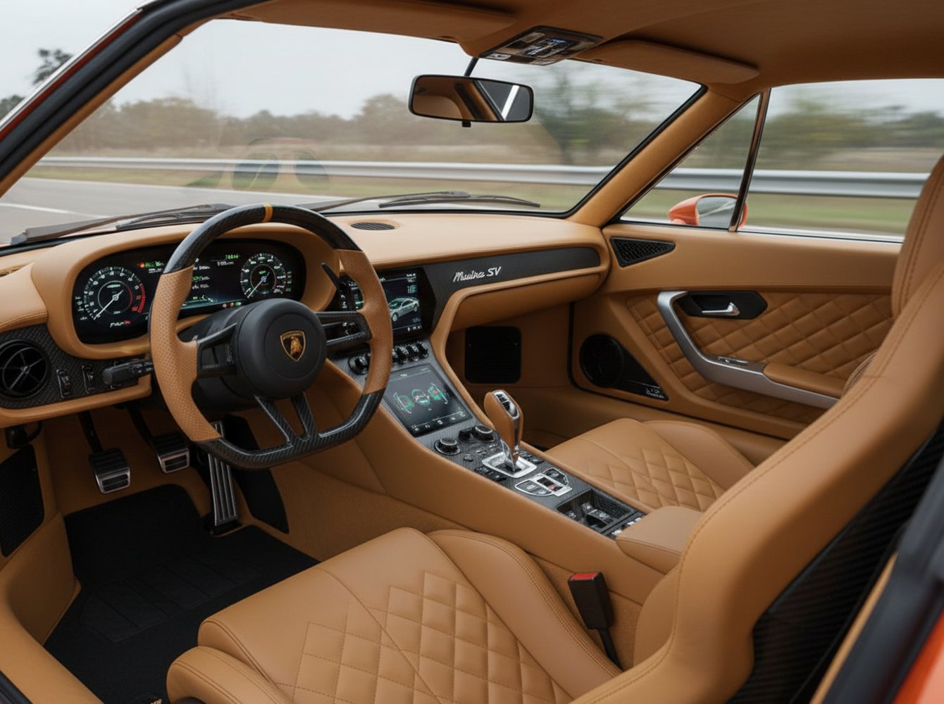 At first glance, the silhouette is unmistakably Miura. However, the body panels are now hand-formed from carbon fiber, draped over a strengthened chassis to reduce weight and increase rigidity. The iconic headlight “eyelashes” remain, but now frame advanced LED projectors. Subtle aerodynamic enhancements, including an active rear spoiler that rises at speed, provide modern stability without corrupting the original, legendary lines.