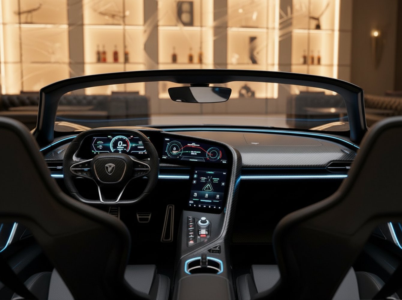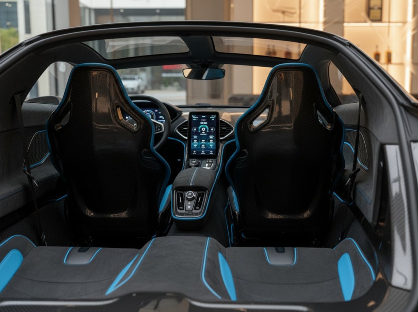 The interior places the driver in a central position, creating an unparalleled connection to the vehicle. The cabin is an exercise in minimalist luxury, finished with bespoke Italian leather and high-tech denim fabrics. All critical information is displayed on a driver-focused screen, eliminating distractions and emphasizing the pure driving experience. The unique layout ensures that whether driving solo or with passengers, the focus remains squarely on performance dynamics.