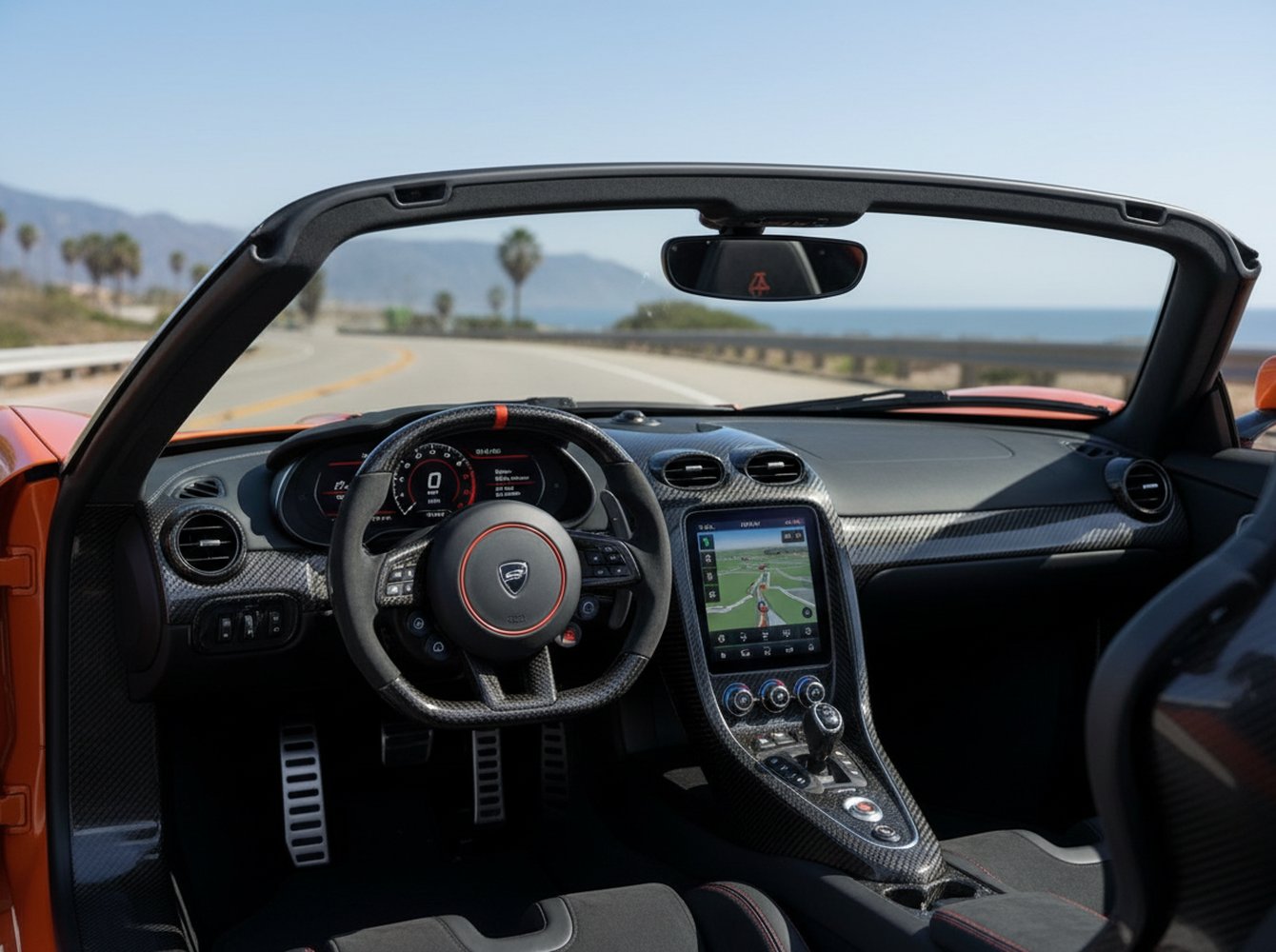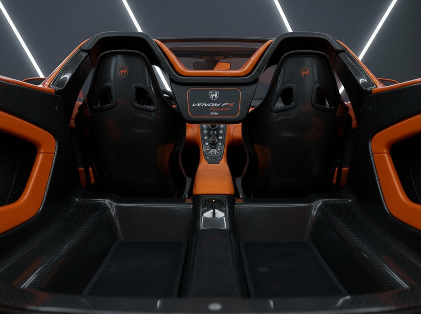 Inside, the cabin remains a driver-focused cockpit, crafted from carbon fiber and trimmed in fine leather. The layout is minimalist, prioritizing the essential functions of driving at speed. While hypercar interiors often sacrifice comfort for weight savings, the Venom F5 Roadster provides a surprisingly refined space. The bespoke, carbon-fiber steering wheel and digital instrument cluster place all critical information directly in the driver’s line of sight, creating an intuitive and immersive environment.